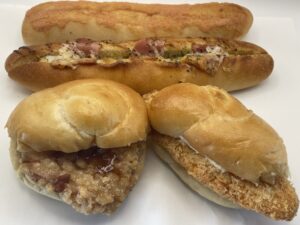 様々な種類の総菜パンありますがどれも挟んであったり乗っている具材がたっぷり。その具材たっぷり総菜パンが