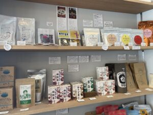 西区古江のタルトと焼き菓子のお店「sappuyer」の洋菓子や、焼き菓子「ミルサン」の作る素朴で体に優しいおやつも、お土産として選ばれることが多い商品になっています。どの商品も生産者のこだわりや思いが詰まったものばかりで、店員さんがその思いをしっかりとお客さまに伝えながら販売されています。
