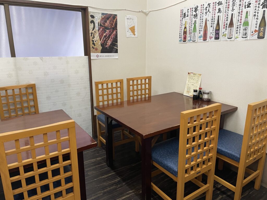 ランチ営業はもちろん、夜は17時から居酒屋的に魚料理を楽しめます。豪華コース(4,000円)・旬の食材コース(3,500円)・うなぎコース(6,800円)といったコースメニューも用意されており、飲み放題オプション(+1,500円で90分)の設定もあるとのこと。歓迎会・送別会・忘年会の利用にも対応しています。貸切も可能とのことで、グループ利用も相談できそうです。