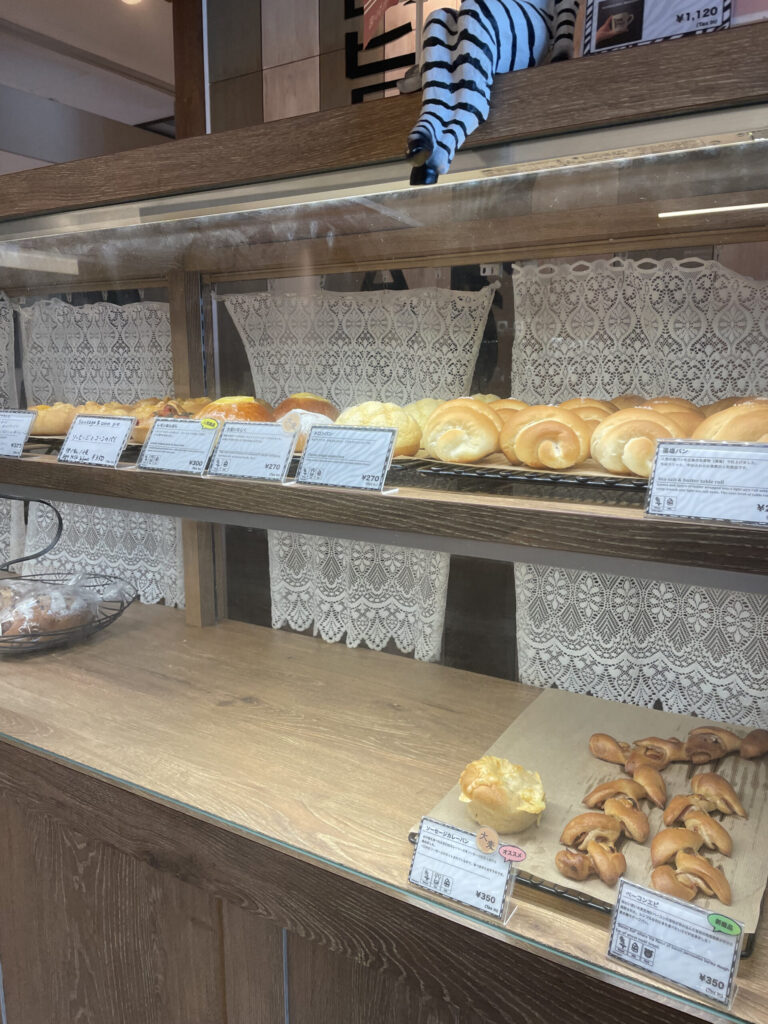 購入したパンをホテル内のイートインコーナーでいただくこともできます。席数は10席ほどで、ゆっくりと休憩しながら焼きたてのパンを味わえる空間になっていました。