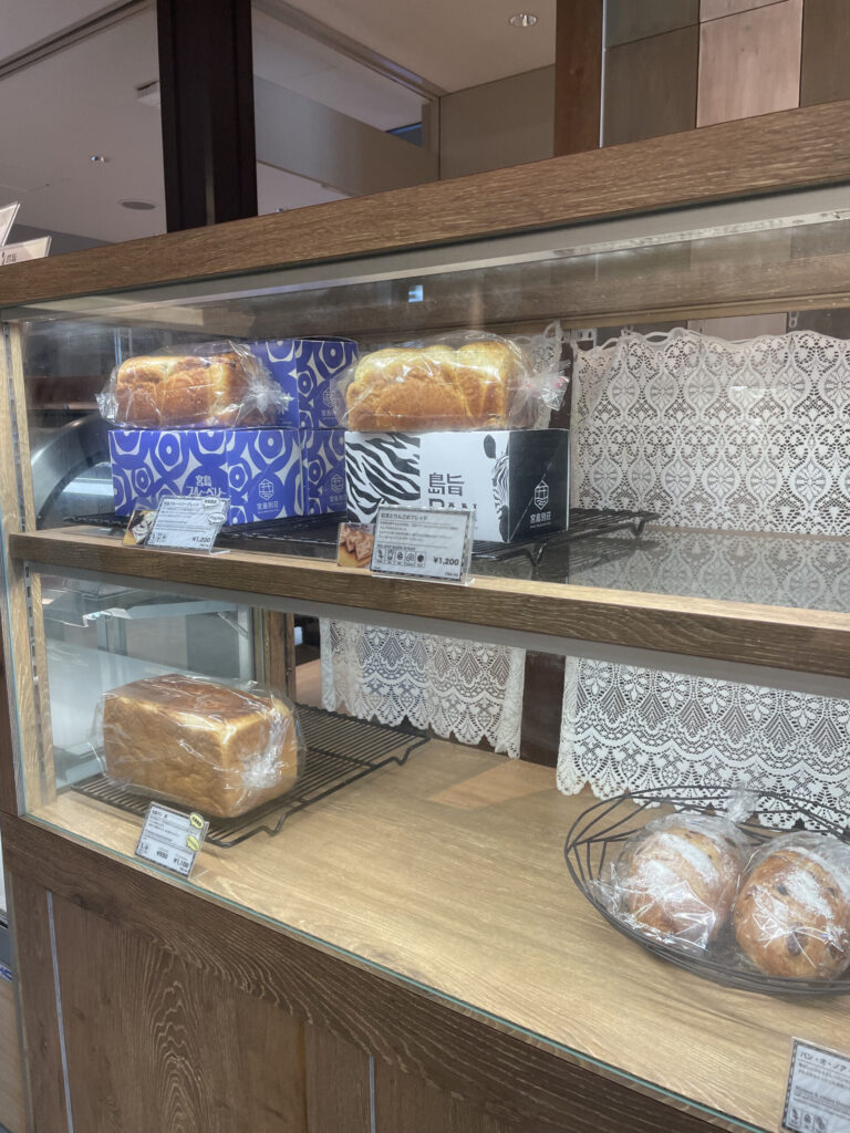 もう一つの看板商品が生食パン「極」。耳まで柔らかく、そのままでも美味しくお召し上がりいただけるもっちりとした食感が特徴です。「宮島」の焼印が入っていて、1本入るオリジナルの箱も用意されているため、お土産にもぴったり。