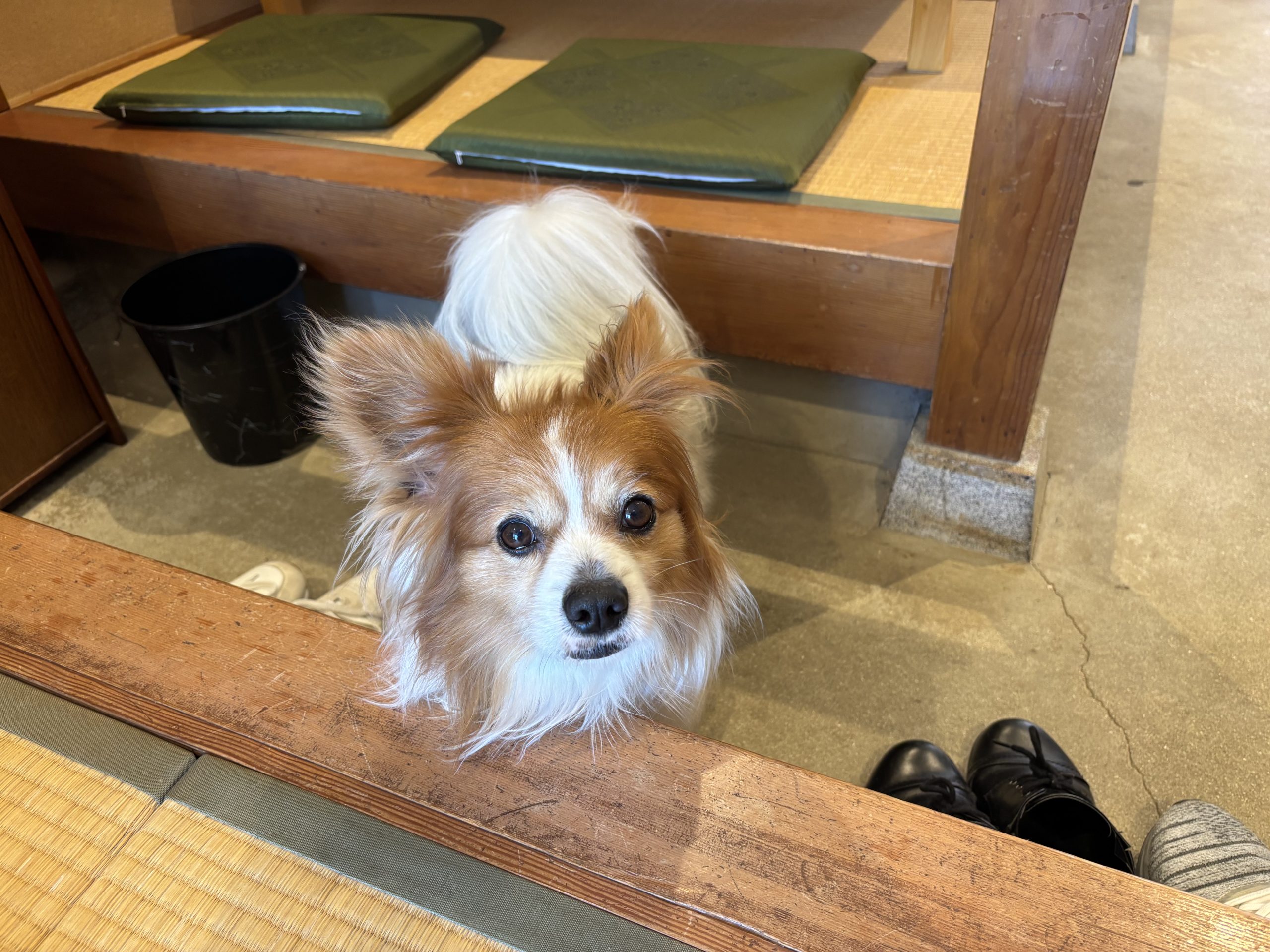 店内をお利口に巡回中の看板犬ラッキーくんがお出迎えしてくれます。愛想が良く賢いので、他の観光客の方にも可愛がってもらっていました。中に入ってみると中は座敷が5席とカウンター席が6席あり、平日でしたがほぼ満席でした。人懐っこい看板犬が、料理を待っている間も店内を和ませてくれます。