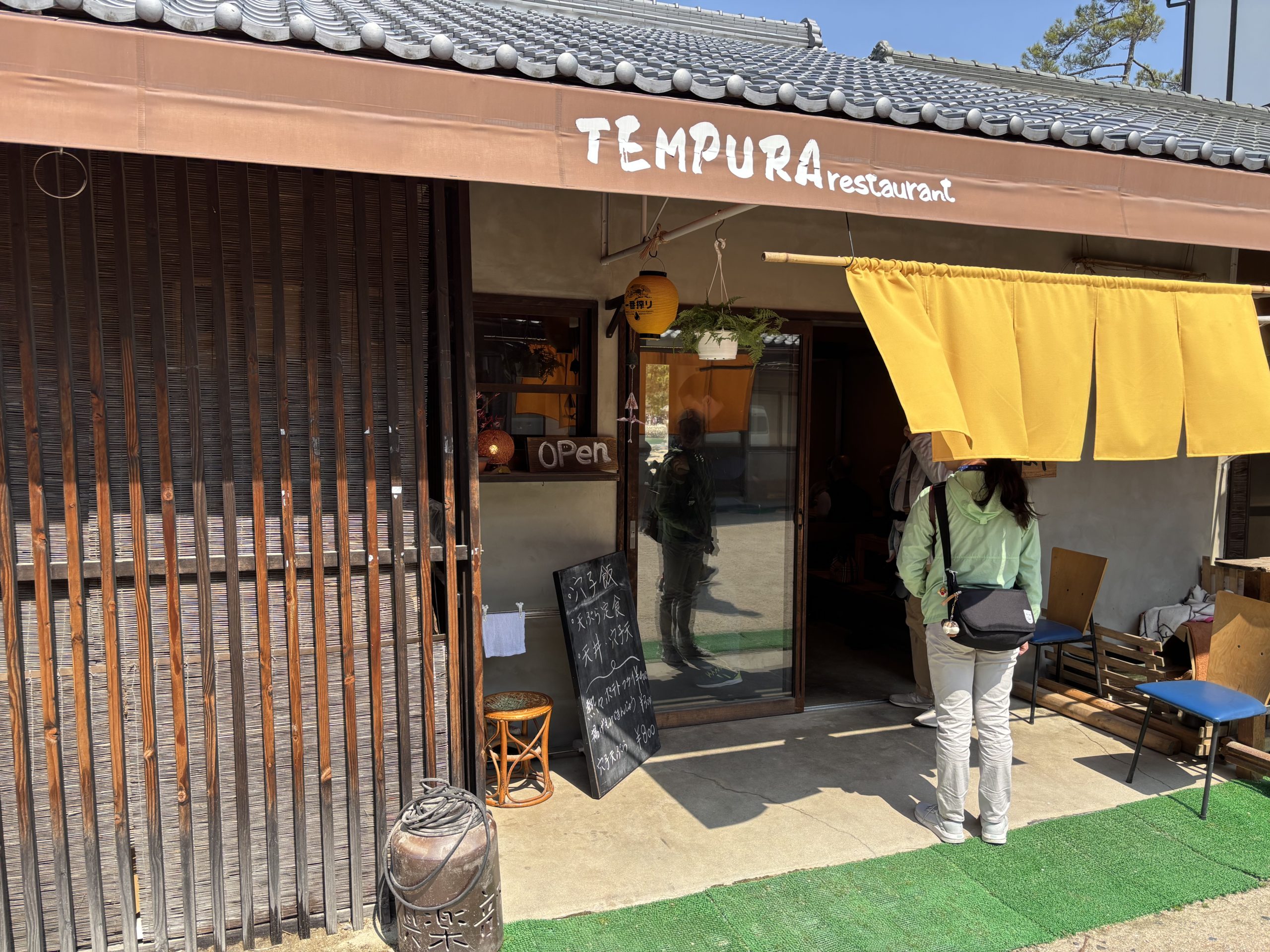みしなやは宮島で唯一の天ぷら専門店。黄色いのれんが目印で、厳島神社近くの大願寺裏手にあります。もともとこの場所には「津久根島」という天ぷら店があり、天ぷらに縁のあるエリアとして地元にも知られてきました。