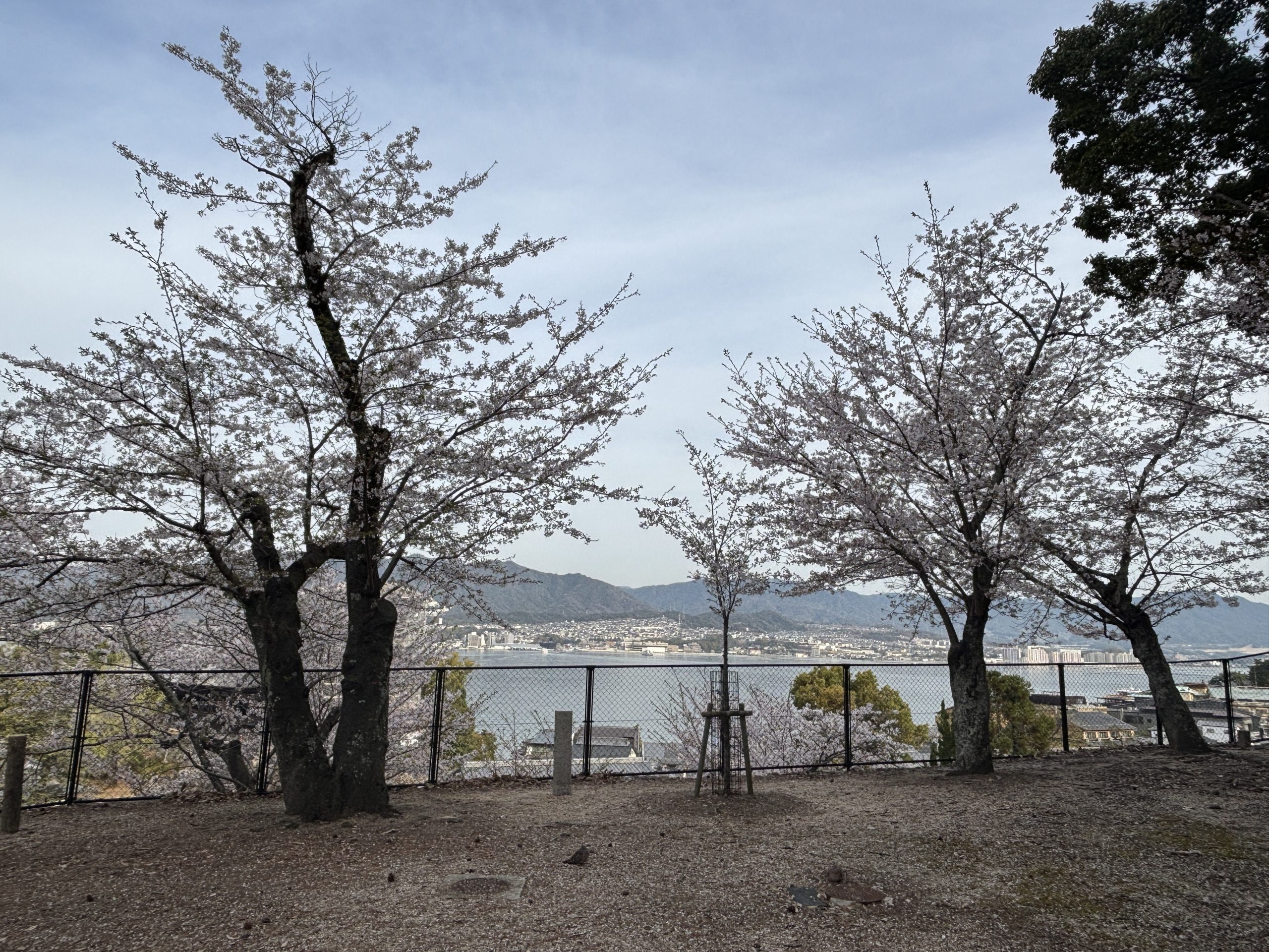 実は地元民の間では「桜の穴場は多宝塔周辺」って言われてるんですが、2025年は工事中なので大元公園が一番のおすすめ。鹿の出没率も高く、背景に海と桜が入るためフォトジェニックです。