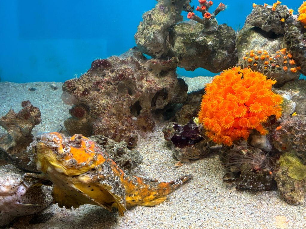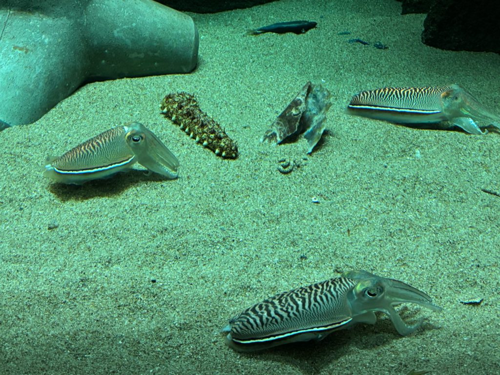 1階には浅瀬の砂丘に住む生き物たちの展示があります。生きた化石と言われるカブトガニは迫力満点でした。次女が「大きなお皿みたい!」って言って、確かにそう見えるなと納得。