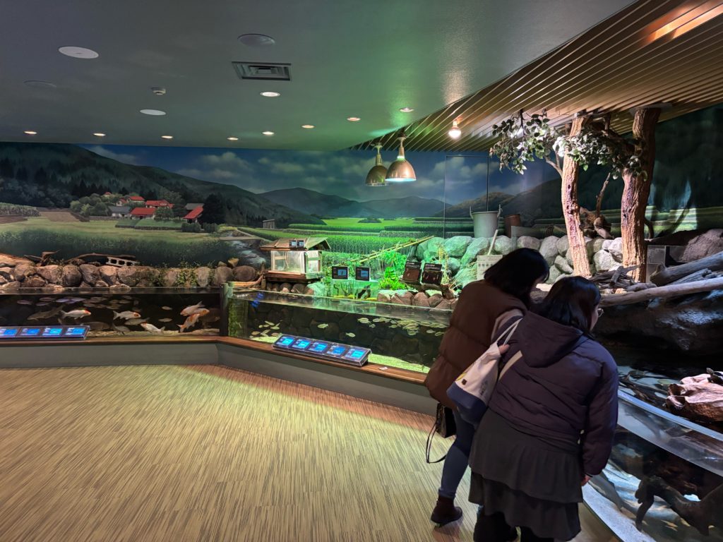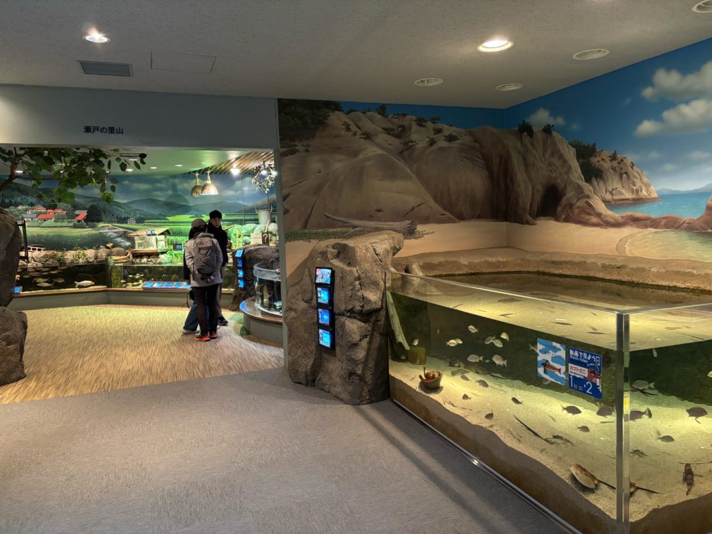 展示構成は瀬戸内海国立公園内にある水族館として、瀬戸内海の自然や特色を広く伝える構成になっています。広島県の代表的な水産業、カキ養殖の様子を詳しく展示しており、長女は「学校で習ったやつだ!」って興奮してました。さまざまな角度から生物を見ることができます。