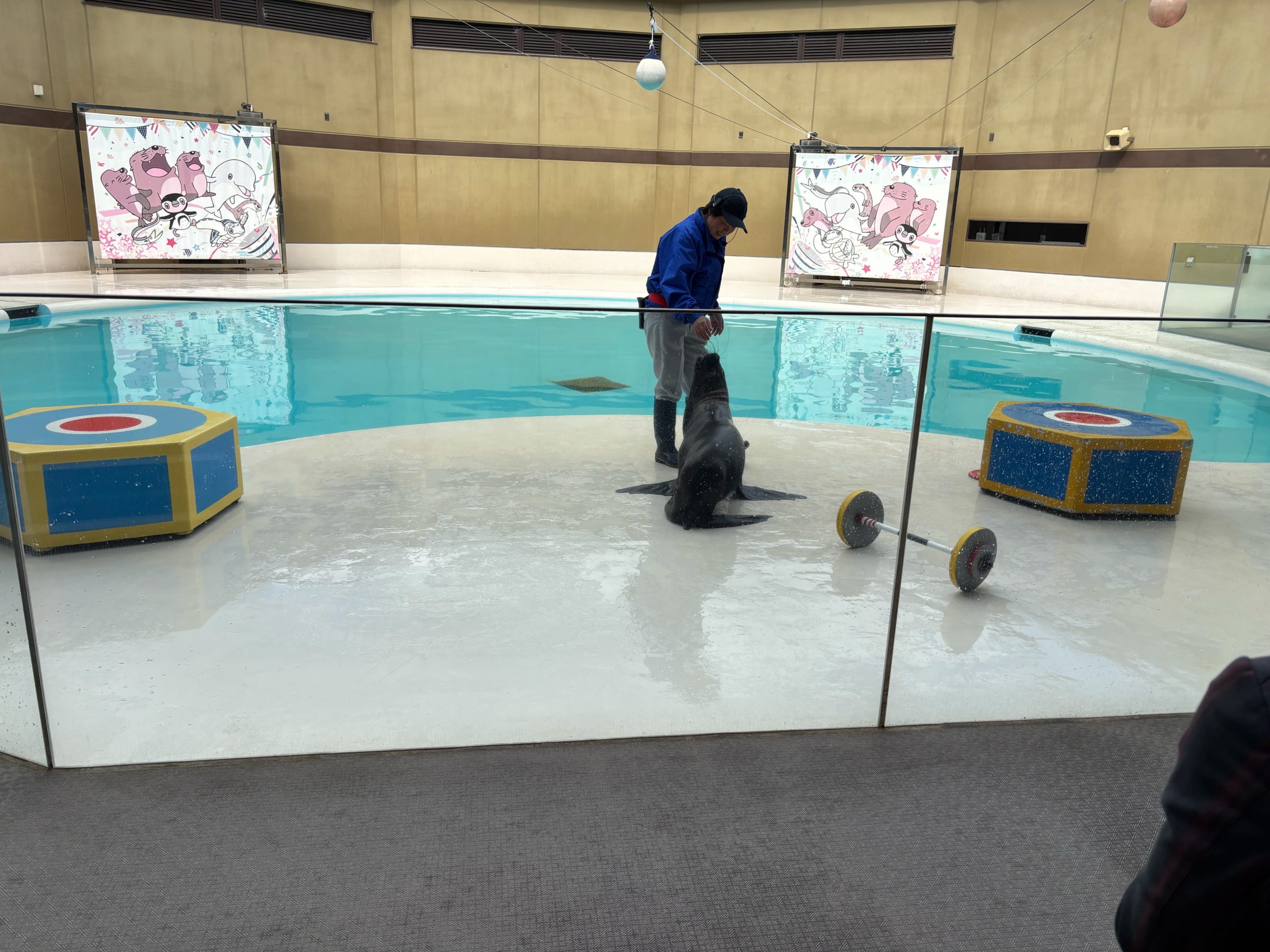 プールはとても広く、アシカがダイナミックに輪投げやボールを用いたパフォーマンスを披露してくれます。大きな体で芸をするアシカの姿は可愛らしくも太々しく、愛嬌があります。近くで見ると大変優しそうな目をしていて、懸命に芸をする彼を応援したくなりました。一度失敗体験があって、ショーの時間を間違えて30分待ちぼうけしたことがあります。時間は必ずチェックしましょう!