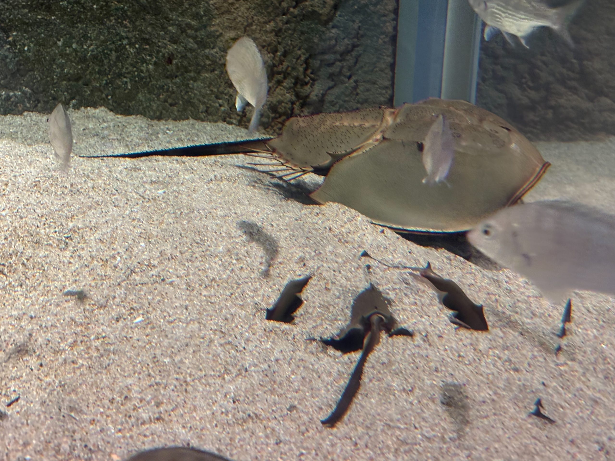 1階には浅瀬の砂丘に住む生き物たちの展示があります。生きた化石と言われるカブトガニは迫力満点でした。次女が「大きなお皿みたい!」って言って、確かにそう見えるなと納得。