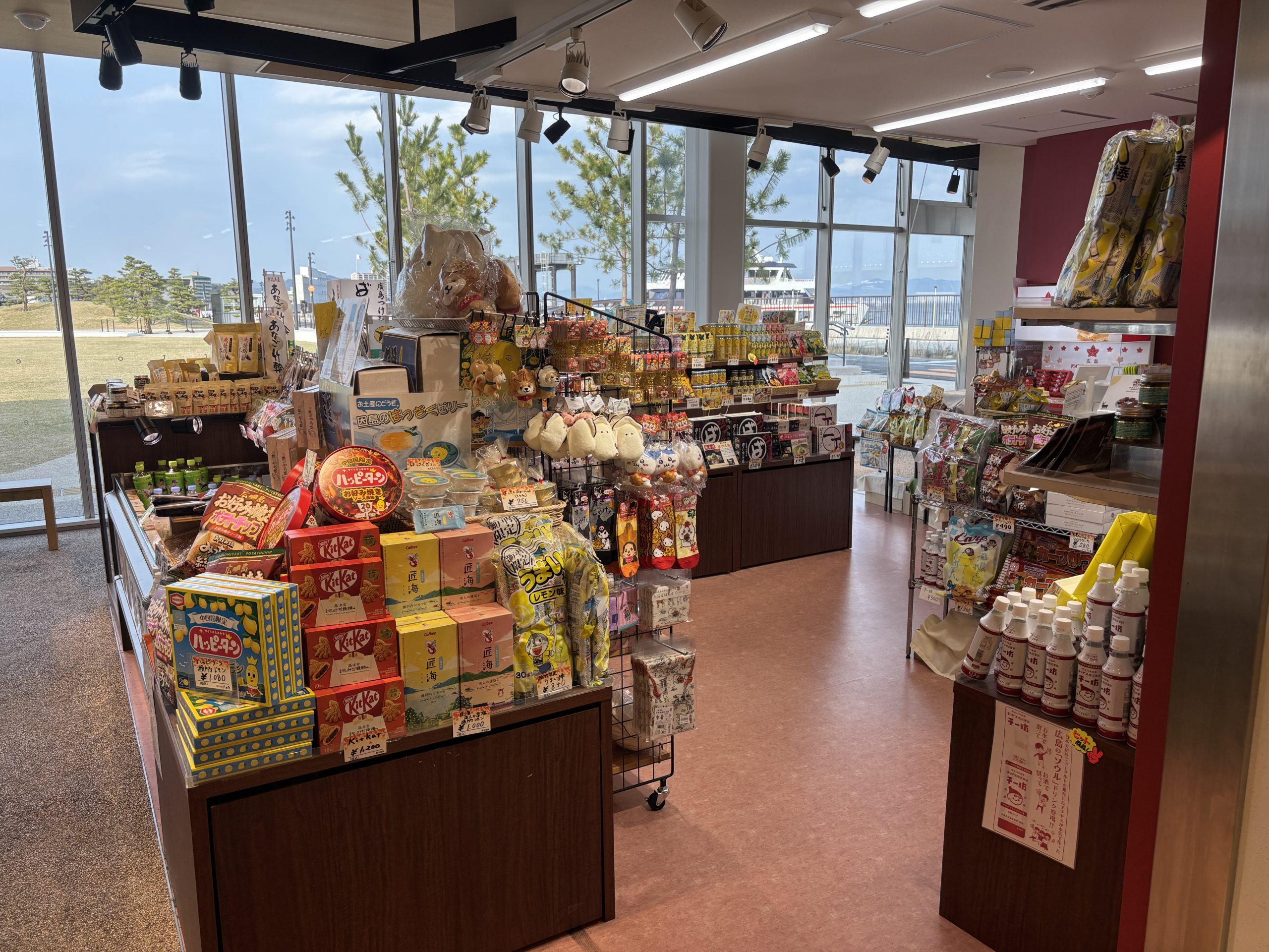 The first floor is a zone for souvenirs and quick bites, with shops such as “Travel Friend Honpo,” lemon sweets from “Shimagokoro SETODA,” and long-established favorites “Yamada-ya” and “Kaede no Ki,” making it easy to browse even with limited time. The second floor focuses on dining, with “Chinchikurin Miyajima-guchi,” “Hiroshima Ramen Kaba,” and “Itoji Coffee THE TERRACE,” offering plenty of options on one level. The terrace overlooks the ferries and the calm Seto Inland Sea—perfect for unwinding after a meal. I visited with my children and found the wide aisles and clear signage helpful for navigating with a stroller (during busy times, it’s even more comfortable when everyone is considerate).