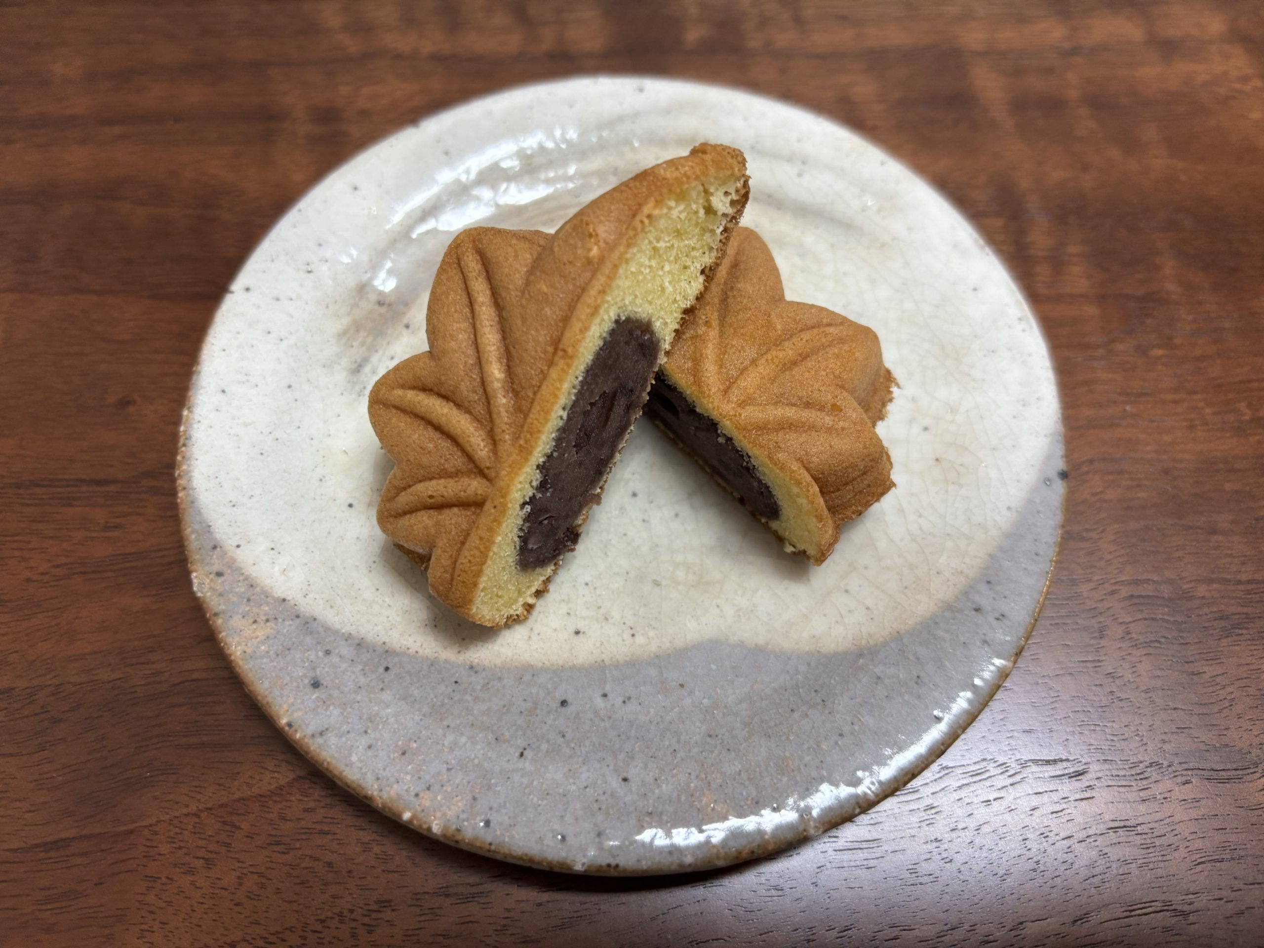 Les momiji manju de la maison établie Fujiiya sont meilleurs fraîchement cuits ! Peu de gens savent que vous pouvez les déguster frais au deuxième étage de Yamadaya.