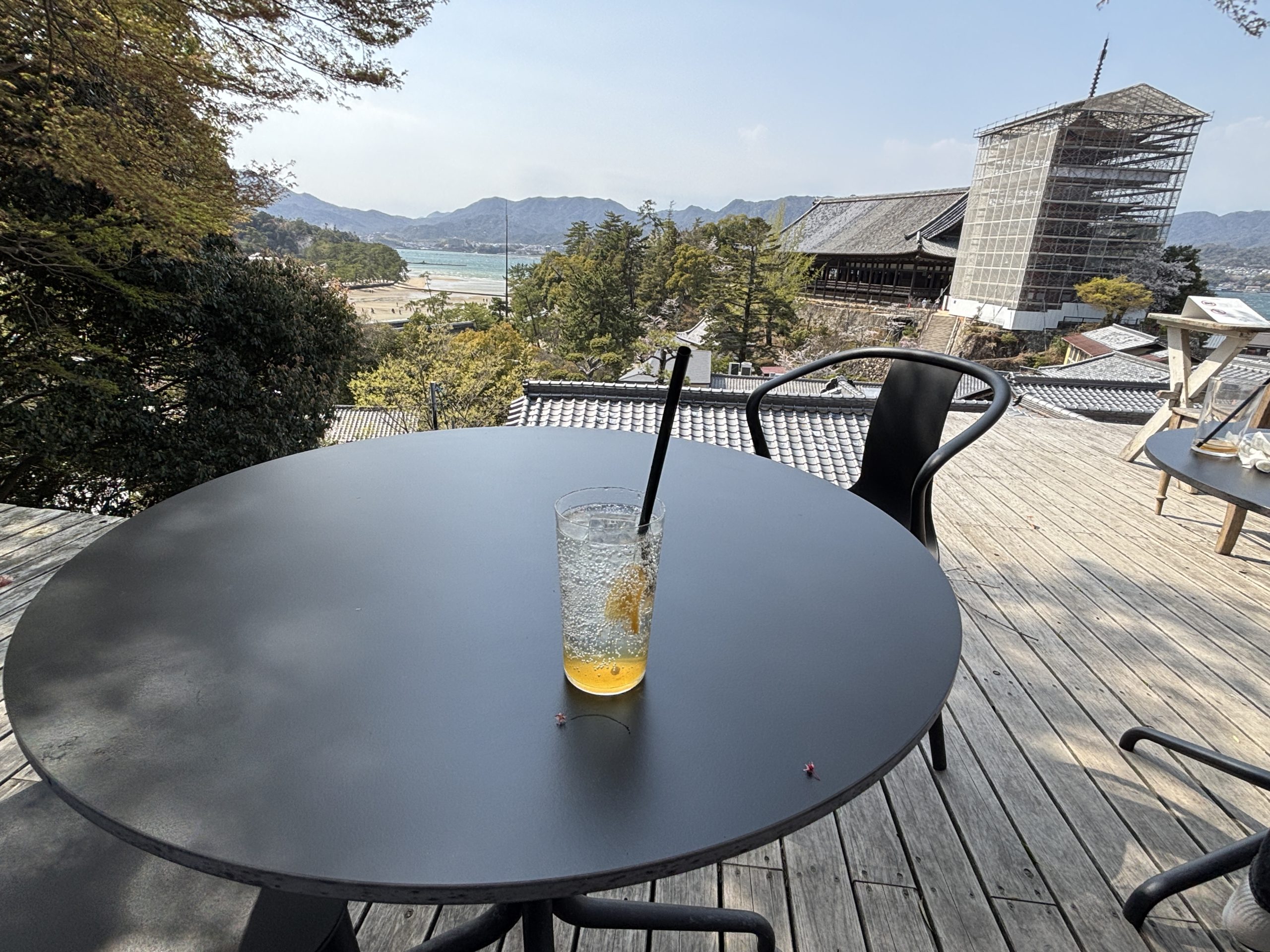写真の通り一つひとつのドリンクが丁寧で美しい景色の中、心地よいひとときが過ごるコーヒーサロンです。宮島にお越しの際はぜひ訪れてみてください。