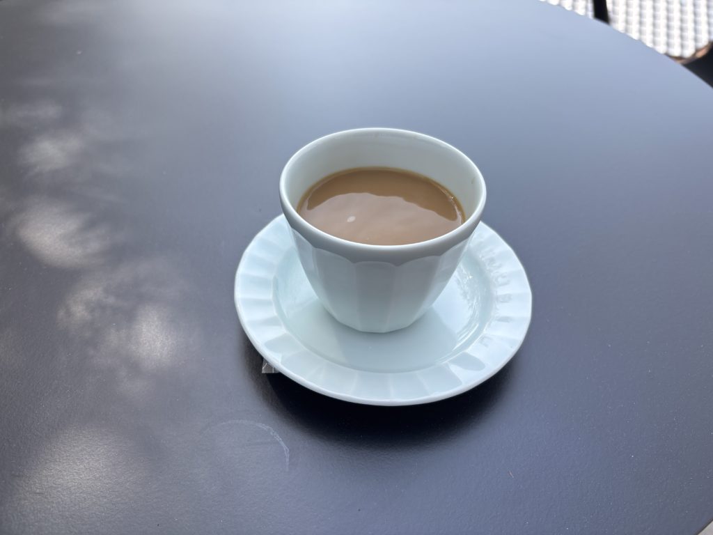 コーヒー(110円税込)は食器もスタイリッシュで、口当たりも良く深煎りされたコーヒーのおいしさが引き立ちます。ホットもコールドも同額で提供されているのも嬉しいポイントの1つです。