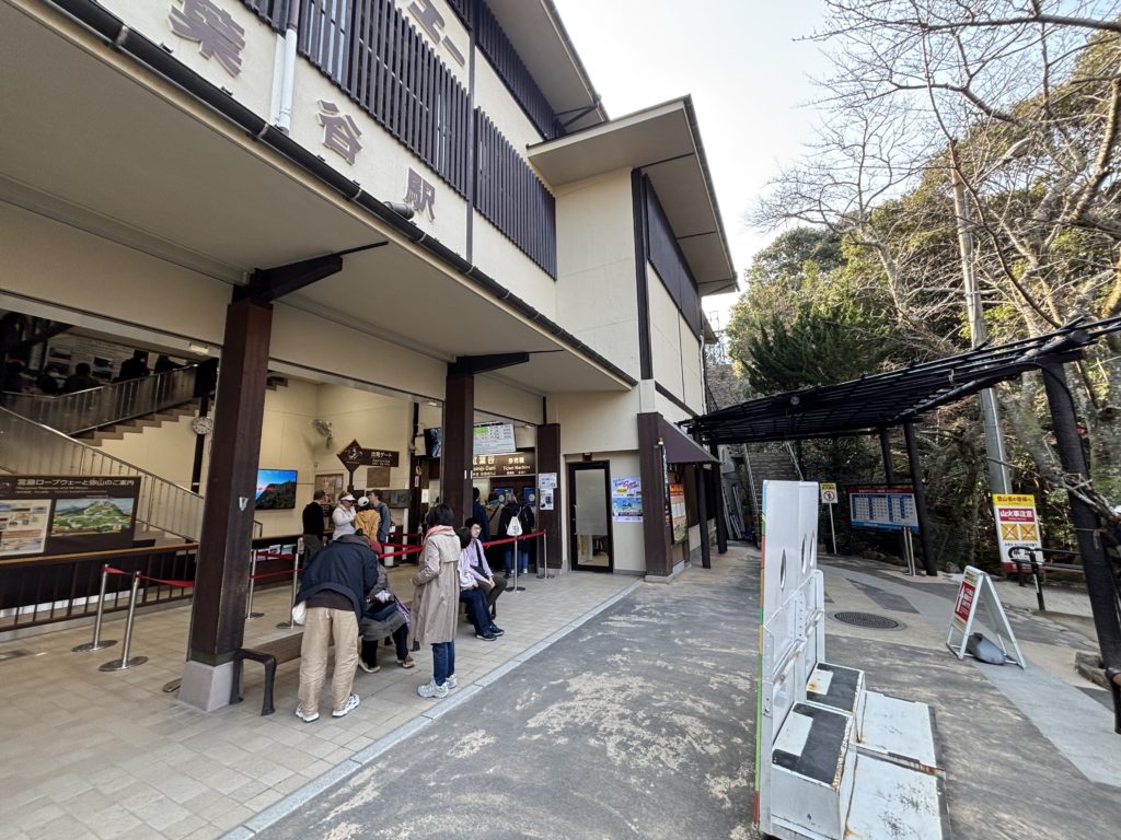 Changez à la station Kayanodani pour le grand téléphérique navette (jusqu’à 30 passagers). Le trajet jusqu’au terminus, la station Shishiiwa (Rocher du Lion), prend environ 4 minutes.