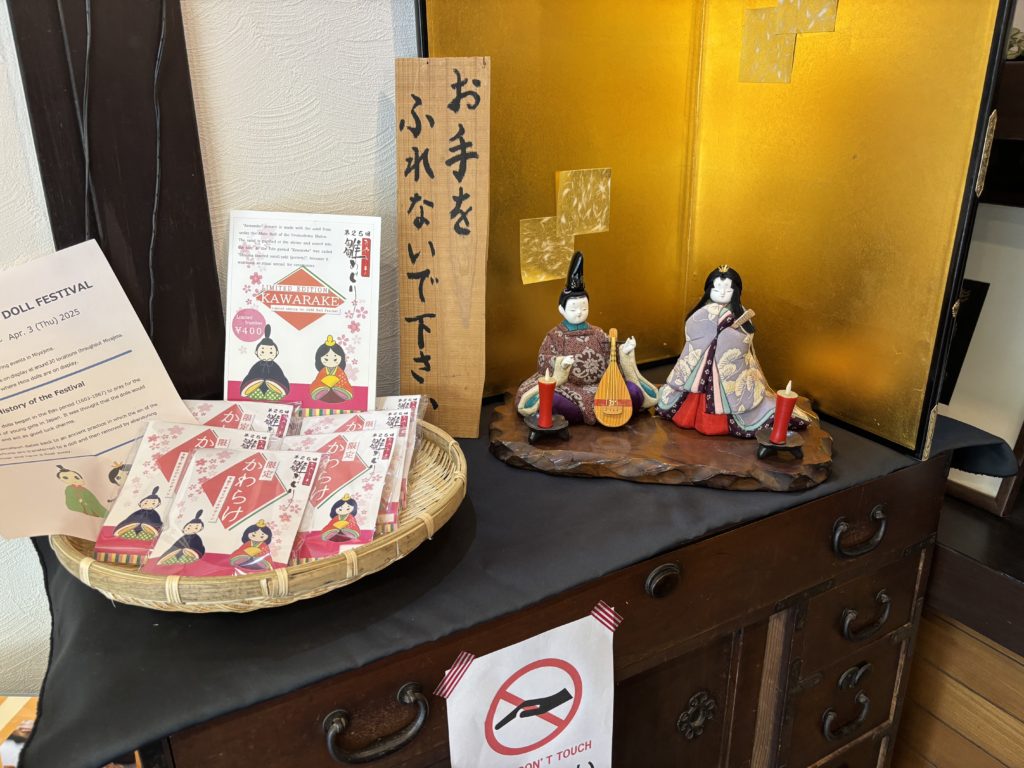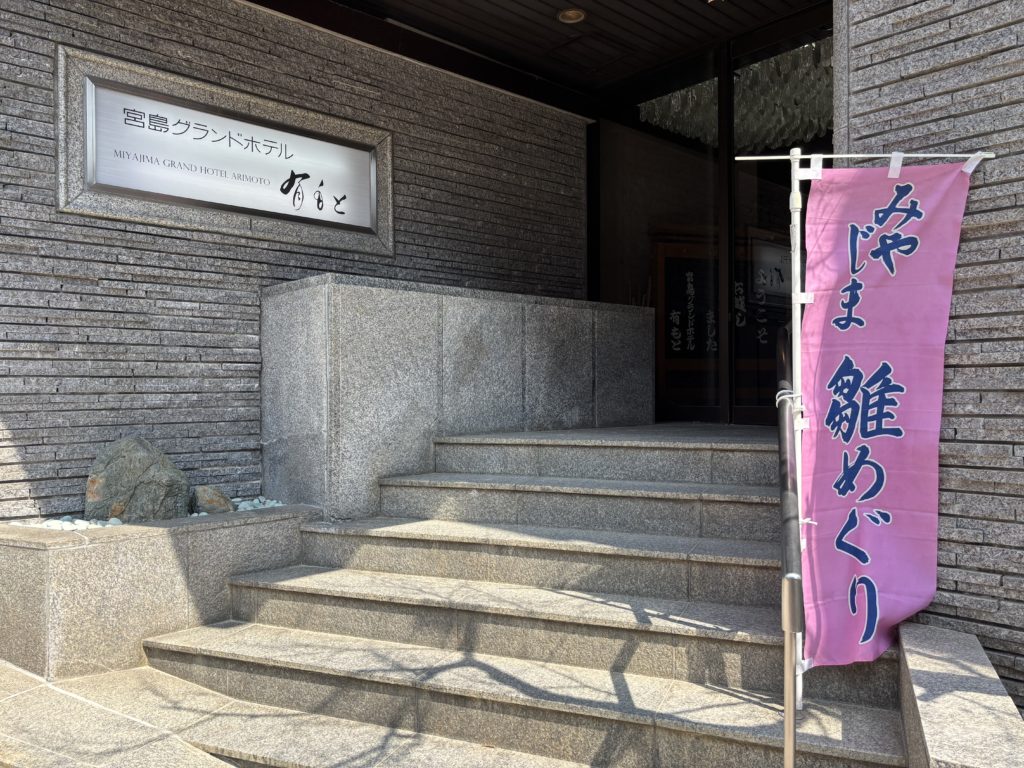 宮島で2025年3月15日(土)から4月3日まで、ピンクの「のぼり旗」が立っている協賛会場にて春の訪れと共に可愛らしいお雛様の展示があります。