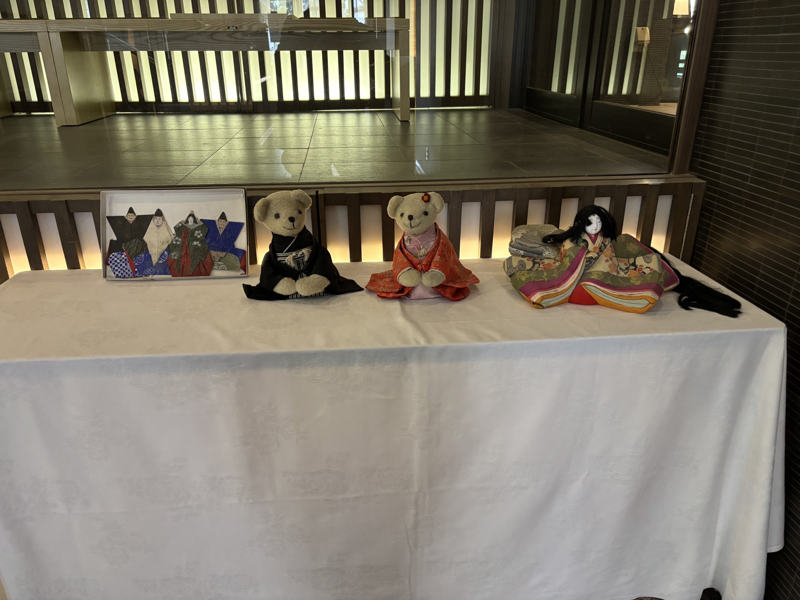 「宮島グランドホテル」の雛人形展示はテディベア雛が現代的で可愛らしかったです。他のお雛様たちもバランスよくまとまっていて見やすかったです。