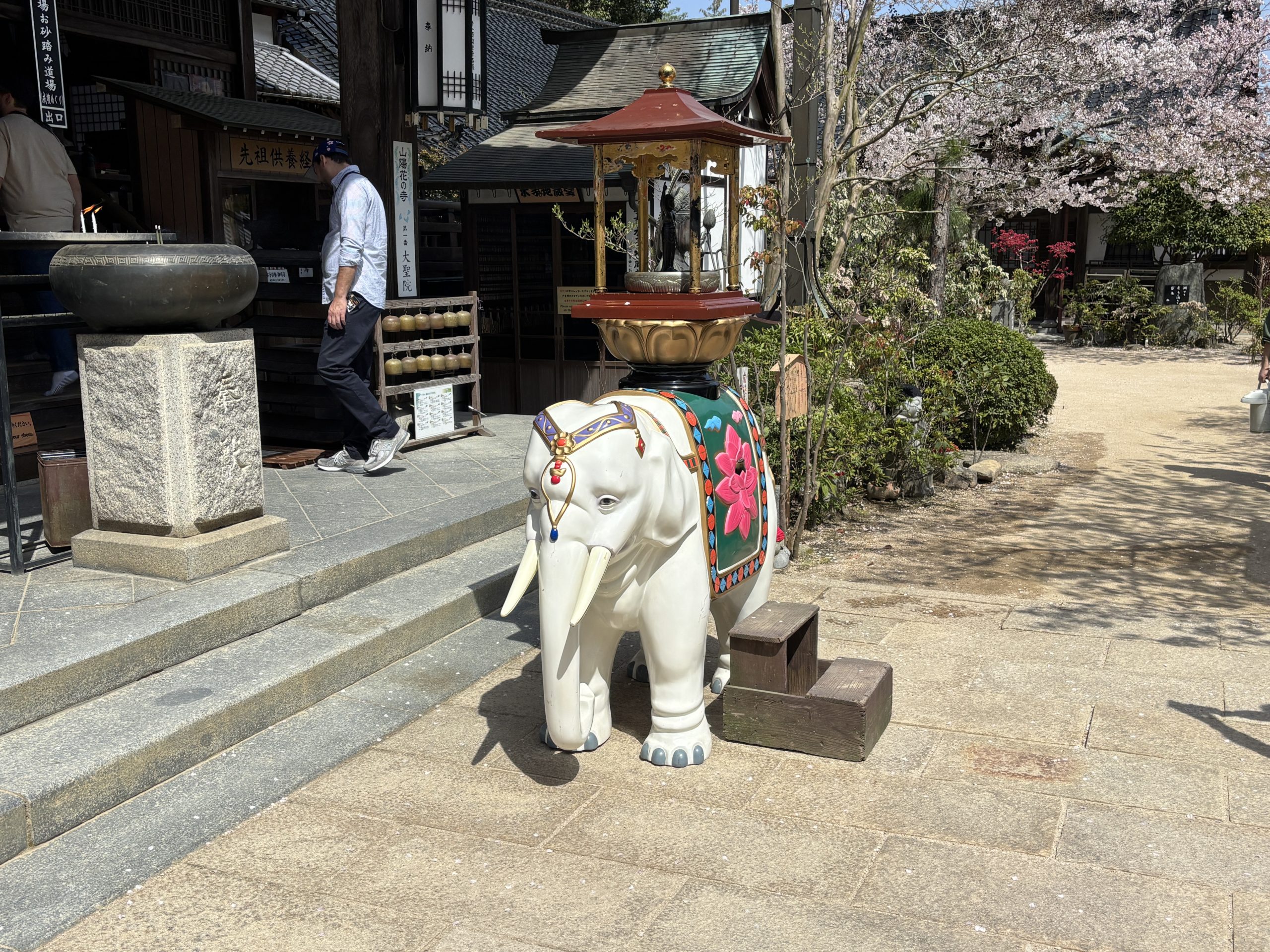 毎年4月8日はお釈迦さまの誕生日を祝う「花まつり」が全国の寺院で行われています。「大聖院」ではこちらのゾウの上にあるお釈迦様に備え付けの甘茶をかけてお祝いします。時間は大聖院前で11:00から開始となっており、希望者はどなたでも参加することができます。ちょうど桜も咲く時期で、お釈迦さまのお誕生日をお祝いできるお祭りに参加すると幸せな気持ちになれますね。
