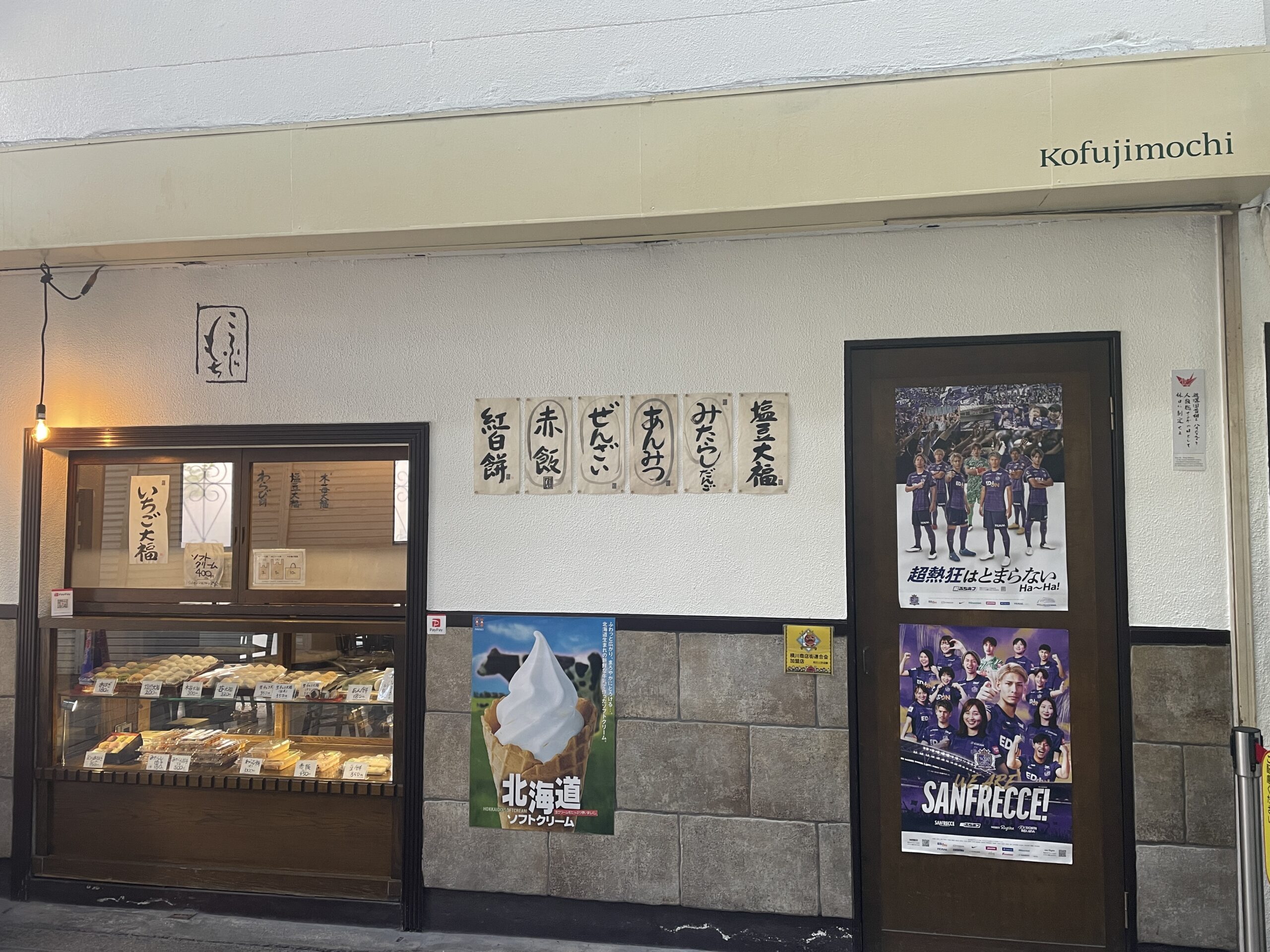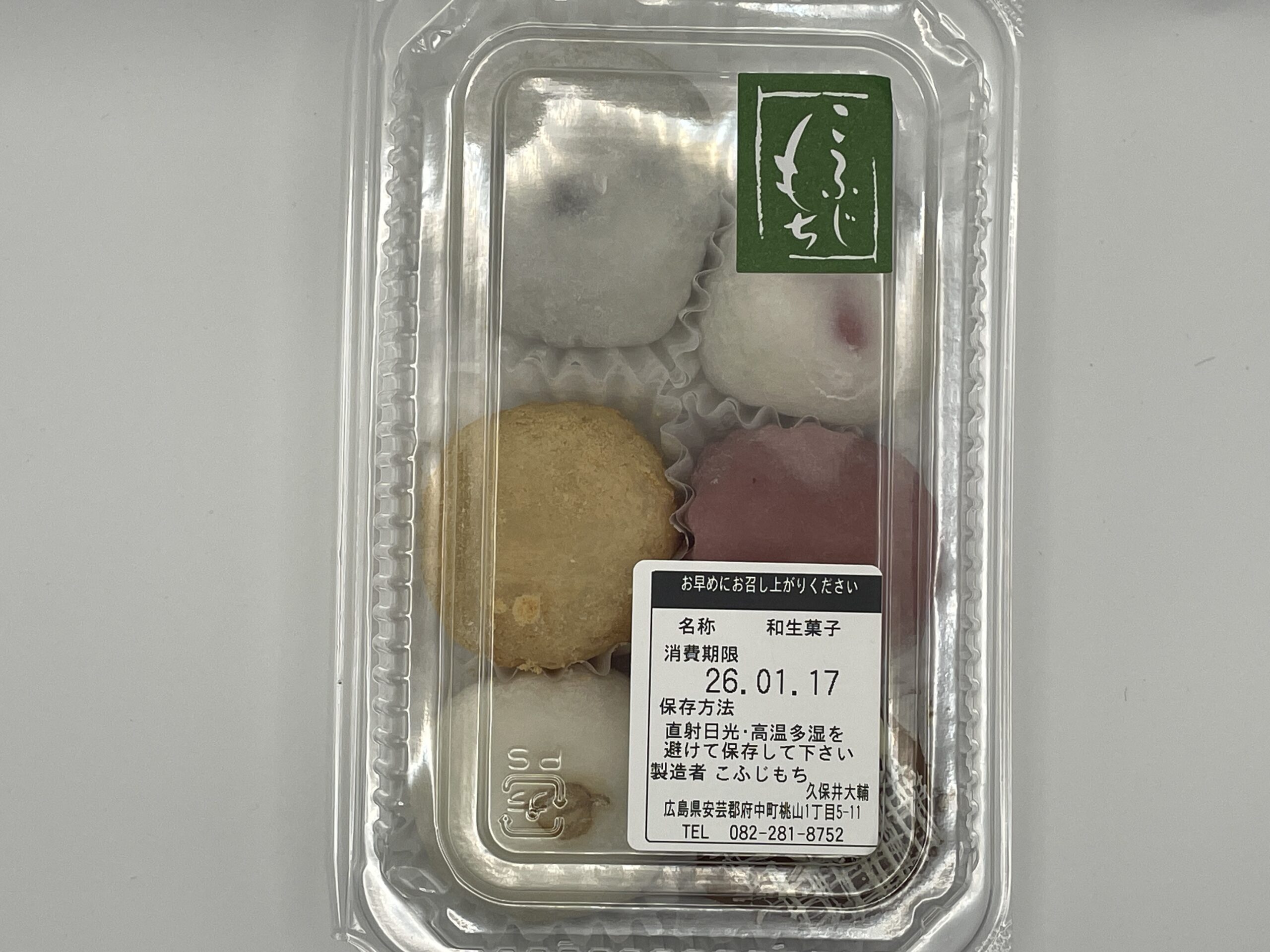 横川駅からすぐ、商店街の中にある「こふじもち 横川店」。創業約60年の歴史を持つ和菓子店で、2006年にこの横川にお店を構えました。本店は府中町にあるそう。