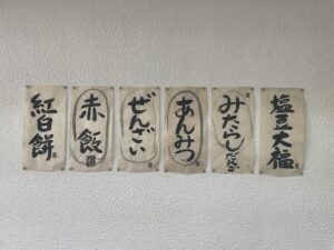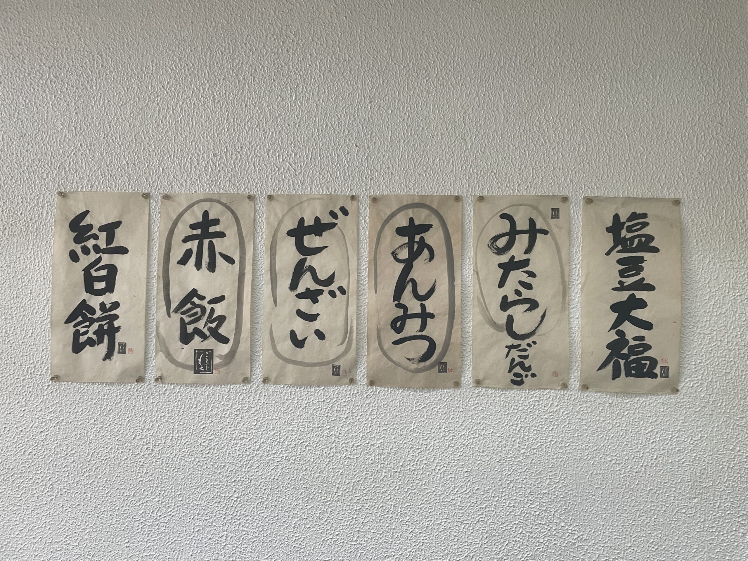 甘味メニューでは、ぜんざい。店内でいただくおはぎセットや、みたらし団子、わらび餅なども人気です。夏季限定でかき氷も提供されるとのことで、暑い日には嬉しいですね。