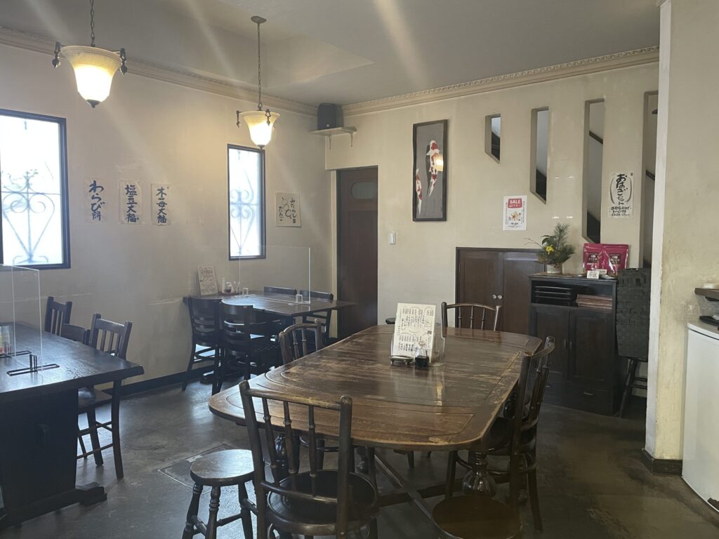 店内に入ると、こじんまりとしながらも落ち着いた空間が広がります。テーブル席が24席あり、2階にもお席があるそう。アンティークな内装が素敵で、ゆったりした時間が流れている感覚になります。